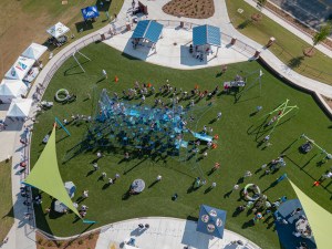 The park includes a 1/3-mile concrete walking trail, an event field and a state-of-the-art ADA-accessible destination playground. The playground features swings, a zip-line, a slide, a rock-climbing apparatus, several other elements and The Barrowsaurus, a 28-foot rope pyramid. The playground has a unique design and modern features that provide inclusive play for all ages.